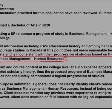 See how the embassy has refused saying you have done B.A. and now you want to do H.R. Management. Illogical progression
