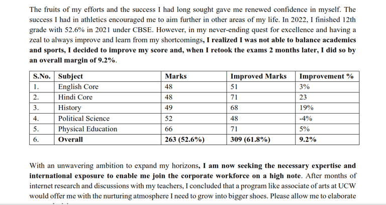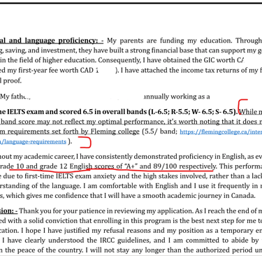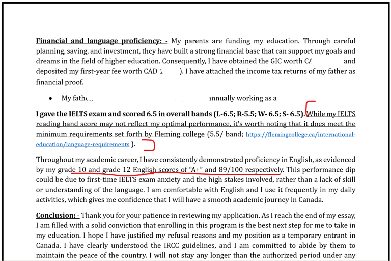 (Check out how our team helped overcome a refusal on language scores by justifying low language scores. We then highlighted academic scores in English and mentioned the minimum required bands by the college ( with a link) .