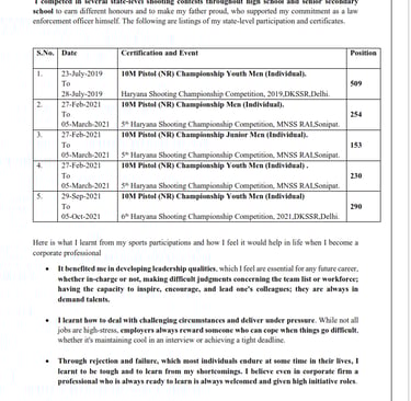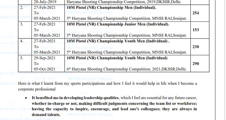 d) Mention natinal/ district level sport participations ( foreign universities values sports a lot!)