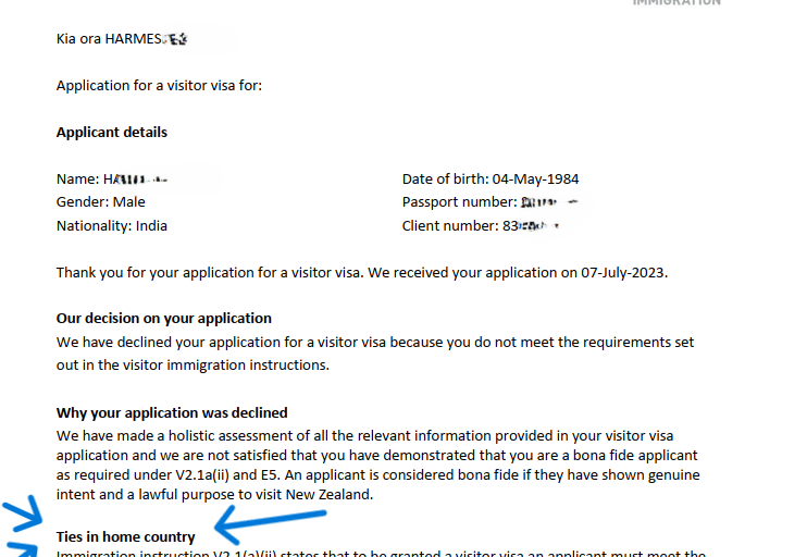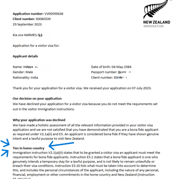 Refusal from New Zealand on home ties
