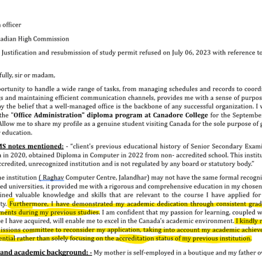 After- Here we helped this client overcome the refusal, we mentioned that it was not his fault if the institution was not accredited. he has always taken his academics seriously and performed well. If you can stand your ground, you deserve your visa.