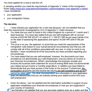 Refusal from Uk on finances